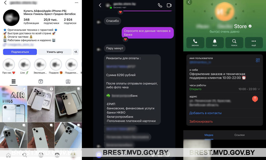 По информации УВД Брестского облисполкома, в Лунинецкий РОВД обратилась 33-летняя местная жительница, которая сообщила, что неизвестный посредством переписки в Инстаграм, под предлогом продажи айфона последней модели, завладел денежными средствами. Потерпевшая пояснила, что хотела обновить свой мобильный телефон. Обсудив с продавцом все условия, гражданка оформила свой заказ и внесла полную предоплату. Время прошло, но желанный айфон так и не был получен. Сумма ущерба составила более 6000 рублей.