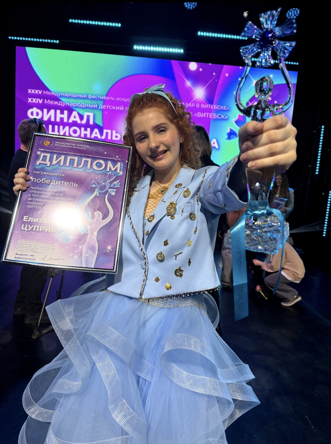 А еще девочке очень понравилась ведущая проекта Хелена Мерааи. «Мы сразу подружились. Она такая классная, красивая и веселая. Брала интервью, поддерживала, настраивала на выступление перед выходом на сцену», — продолжает делиться впечатлениями София.