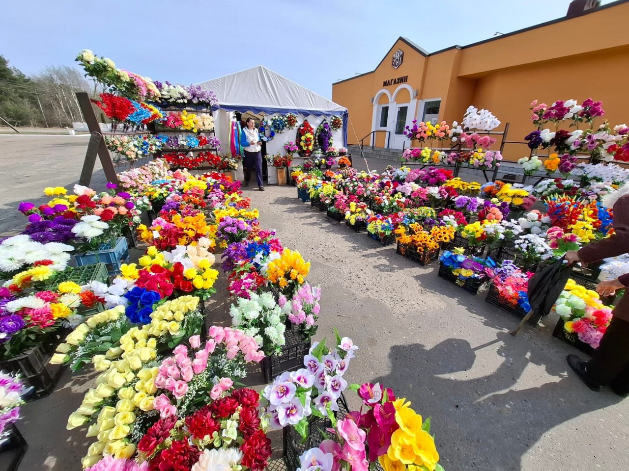 Особый ритм в период Радуницы создает торговля сопутствующими товарами. В преддверии праздника Спецпредприятие организует расширенную продажу искусственных цветов, корзин, венков, свечей, лампад, лент и иной атрибутики, а также надмогильных сооружений. Так, с середины марта на кладбищах «Северное» и «Плоска» организована работа дополнительных торговых объектов с разнообразным ассортиментом товара, а с 18 по 21 апреля выездная торговля будет проходить на всех местах погребения, находящихся в хозяйственном ведении предприятия, а также на кладбищах в деревнях Косичи и Каменица-Жировецкая.